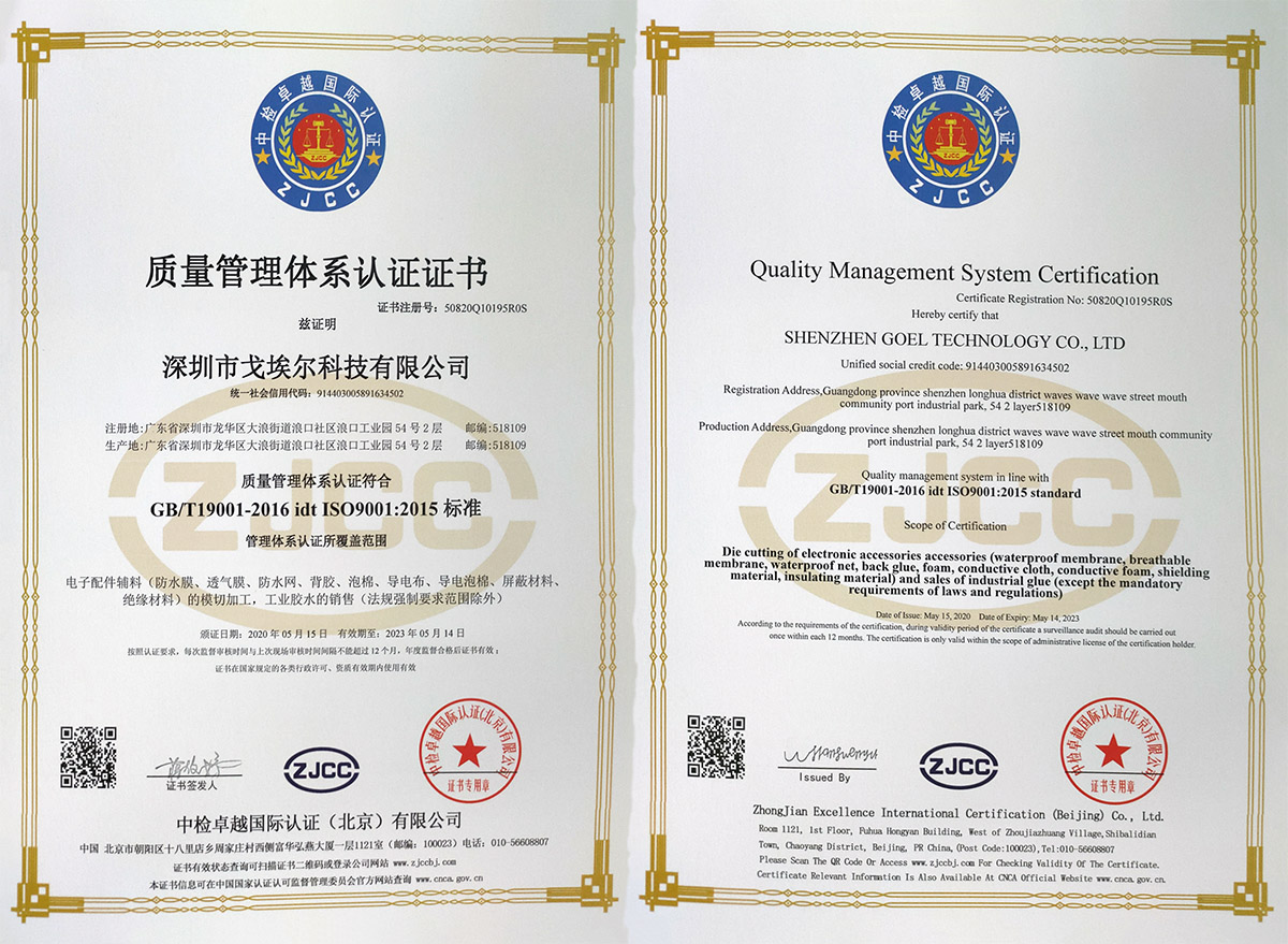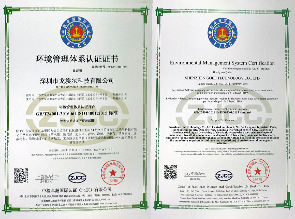 深圳市戈埃爾科技有限公司成立于2012年1月,坐落于中國經濟改革開放的前沿——粵港澳大灣區——深圳龍華新區,占地面積達2000平米.是一家專注于高功能應用材料解決方案之防塵透氣、防水透聲、電磁屏蔽、 高功能膠粘和模切加工的公司,產品用于航天、航空、通訊、汽車、醫療、食品、消費類電子等高科技領域,與國內外企業和研發機構建立了長期友好的合作關系。 經過多年的發展,公司已成為國內防水透氣和防水透聲行業具有競爭優勢和品牌影響力的供應商。
