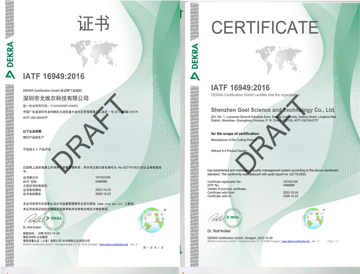 “專心、專注”是公司一直秉承的核心經營理念,公司現有一批本行業從業多年的技術隊伍和管理骨干,擁有多臺模切機及系列沖壓等生產設備,同時也構建了一系列可靠性檢驗和試驗設備。公司成立伊始,便嚴格按現代企業制度進行建設和管理,以靈活的市場運作機制不斷為客戶提供產品和服務。隨著電子工業的飛速發展,為達到向客戶提供更好的產品和服務,公司先后通過ISO9001質量管理體系和ISO14001環境管理體系認證,同時還榮獲2022年深圳市“專精特新”企業稱號和“創新型中小企業”稱號。在2023年10月公司獲得IATF16949(ISO/TS16949)——汽車行業管理體系認證。   及時周到的服務贏得了國內外客戶的高度信賴和支持.