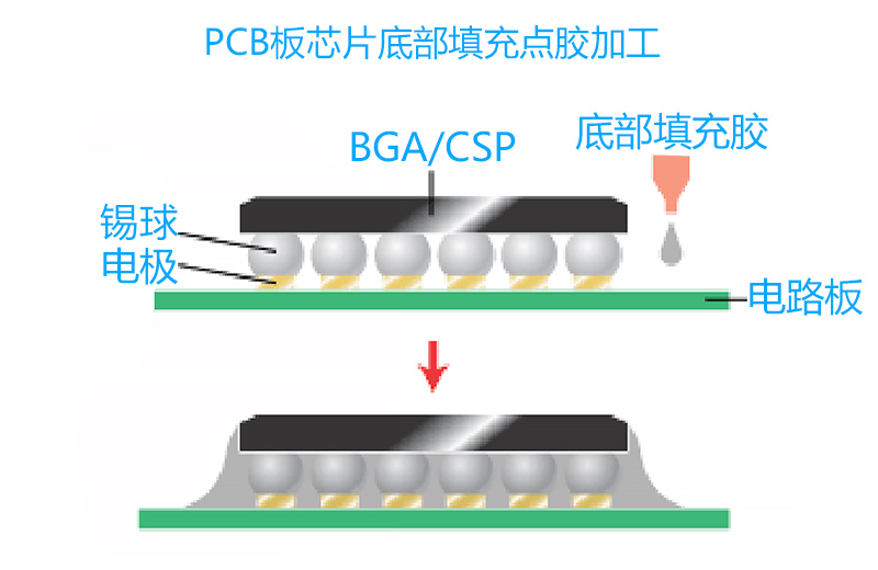 PCB板芯片底部填充點膠加工的優點