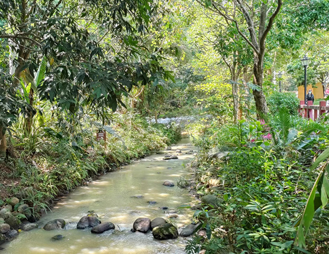 晴日暖風熏人漾,醉入人間五月天。”對于陽臺山大家都并不陌生,站在山腳仰望,也許是前段時間下了一周雨的緣故,山間蔥郁的枝葉在光影中斑駁流離,宛如新綠,輕吸一口舒爽微涼的空氣,頓感心曠神怡。在山門合影留念之后,大家一起從山腳出發,沿著山路蜿蜒而上。