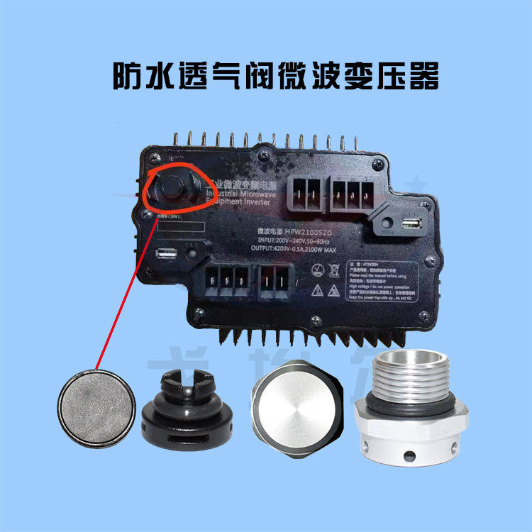 工業(yè)微波設(shè)備變壓器是微波設(shè)備能否工作的核心部件,簡稱:微波變壓器。它的工作任務(wù)是把220伏的電壓利用電磁感應(yīng)的原理來提高為2300伏左右。所以也稱為升壓變壓器,其主要構(gòu)件是初級線圈、次級線圈和鐵心(磁芯),安全隔離等。那么在升壓的過程中,會產(chǎn)生大量的熱量從而產(chǎn)生水蒸氣。所以在它的核心排氣孔必須使用防水透氣閥來解決防水透氣、避免灰塵、水、水蒸氣等液體通過殼體上透氣孔進入產(chǎn)品內(nèi)的問題。