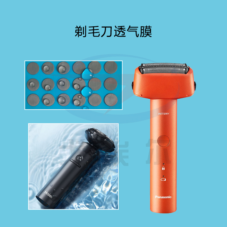 透氣膜材料通常由聚合物或陶瓷等材料制成,其微孔直徑比水分子大,但比空氣分子小。這意味著水分可以通過透氣膜,但不會通過膜進入剃須刀內部。同時,透氣膜的微孔結構允許空氣通過,幫助散熱并防止灰塵和污垢積聚。