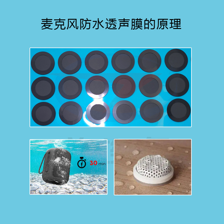 防水透聲膜的原理是,當水蒸氣處于較小狀態時,可以順利地滲透到另一邊,但是當水蒸氣冷卻變成水滴時,水分子無法滲透到另一面,因為水滴表面的張力會阻礙滲透水分子,從而實現防水的效果。而且,這種膜不僅能防水,還能保持音質完好無損,是各種發聲設備的理想選擇。