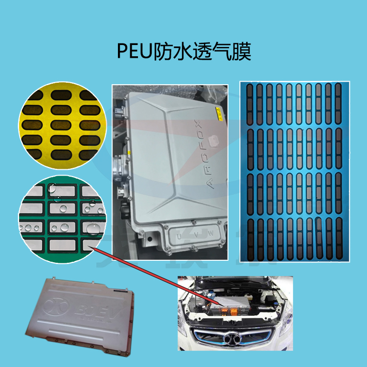 在汽車領域,PEU(電力電子單元)是電動汽車中的核心部件,負責控制電池組和電機之間的能量轉換和傳遞。而防水透氣膜在PEU中的應用,主要是為了保護其內部的電子元件和線路,防止水分和灰塵的侵入,同時確保PEU內部的空氣流通,從而維持其正常的工作狀態。